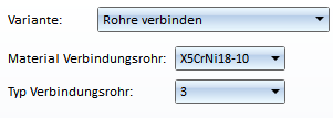 Bei der Variante Rohre verbinden, wählen Sie das Material für das Verbindungsrohr und dann den Typ. Dieser bestimmt den Krümmungsradius: