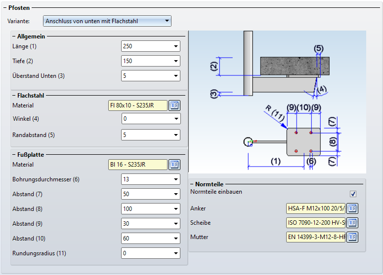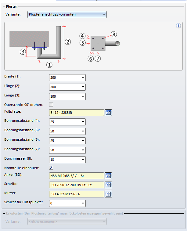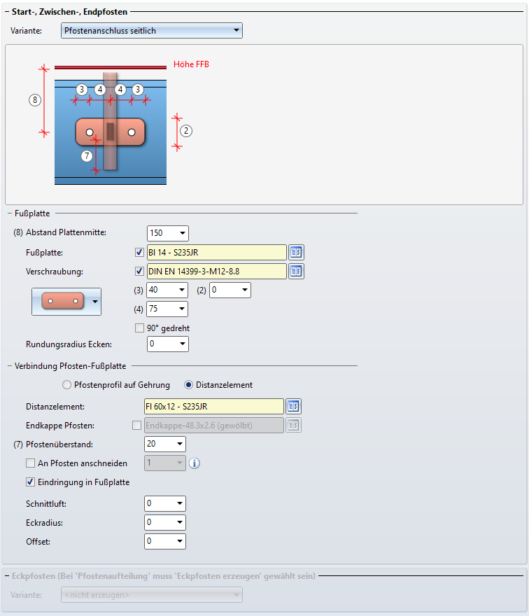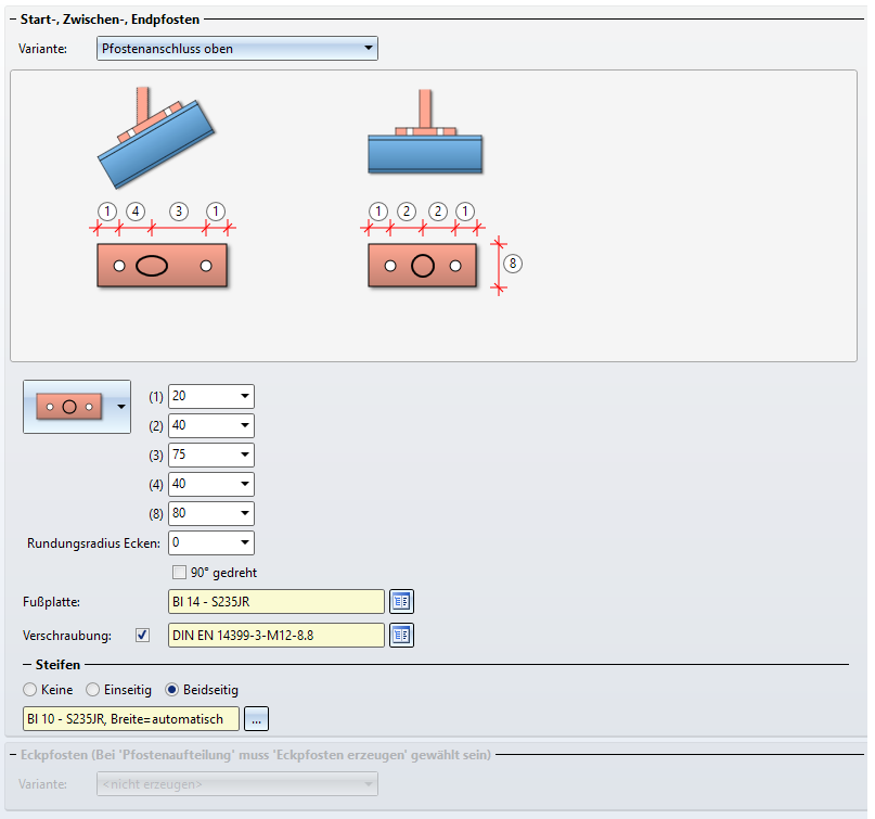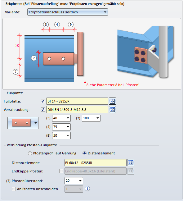 • Bestimmung der Verbindung Pfosten - Fußplatte: