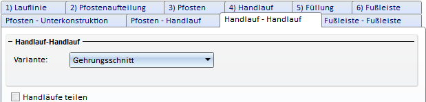 Ist die Checkbox aktiv, dann lassen sich die Variante für die Handlaufteilung und die Aufteilung der Handläufe - segmentweise - festlegen.