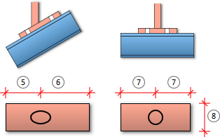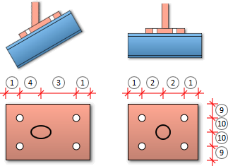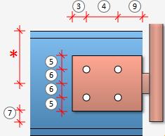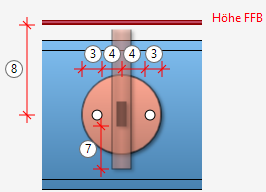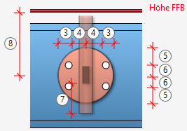 • Bohrungsabstand, d. h. Abstand des Bohrungszentrums zum Zentrum des Pfostens (4),
