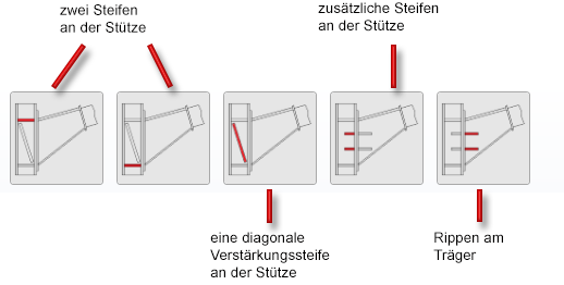 In der zweiten Auswahlbox können Sie wählen, ob zusätzlich zu den Steifen an der Stütze Rippen am Träger eingebaut werden sollen. Wenn Sie hier Steifen + Rippen wählen, dann können Sie nach einem Klick auf das Symbol