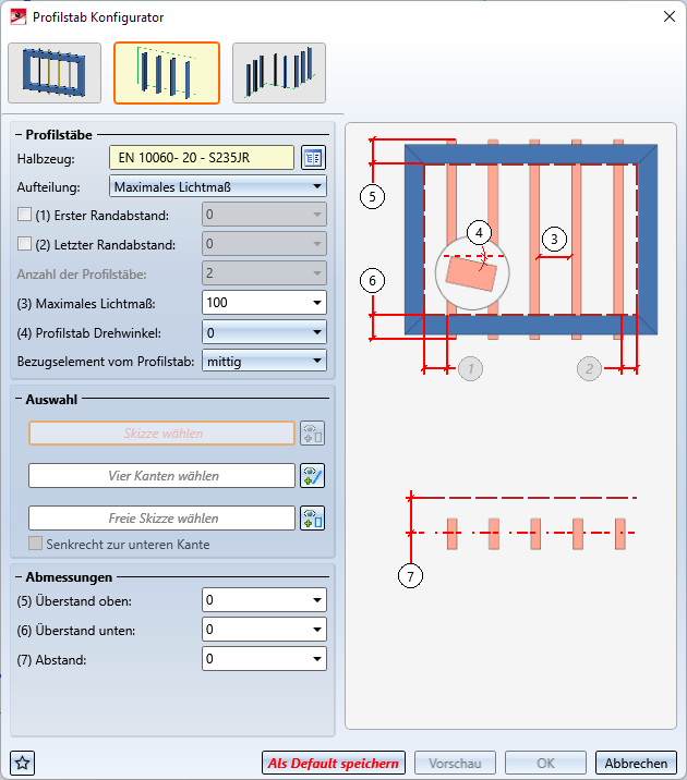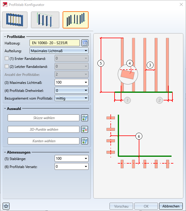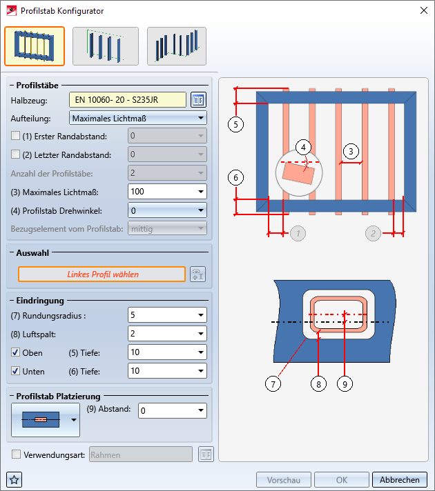 Nach dem Aufruf der Funktion wird das Dialogfenster Profilstab Konfigurator angezeigt: