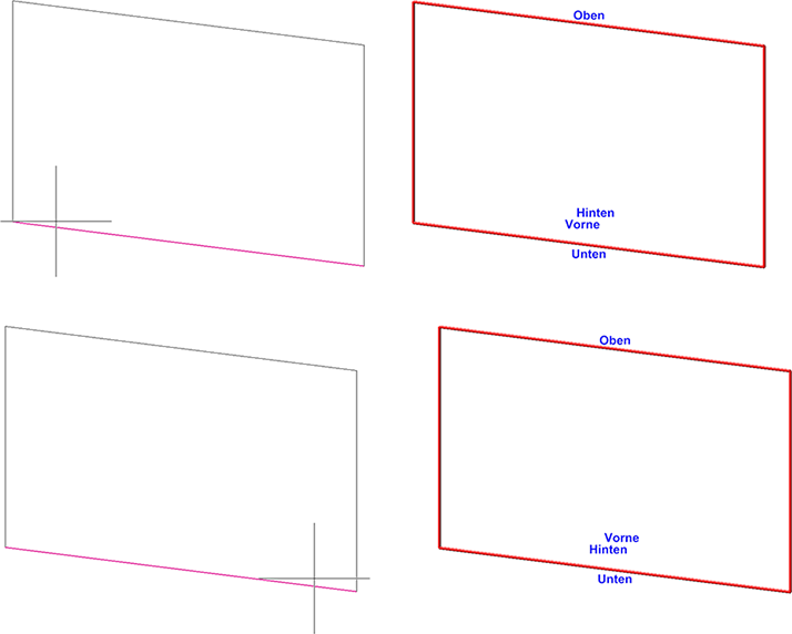In der Konstruktion wird anschließend gekennzeichnet, wo - in Abhängigkeit von den gewählten Profilen - vorne/hinten und oben/unten ist. Die Kennzeichnungstexte sind dabei in Z-Richtung ausgerichtet.