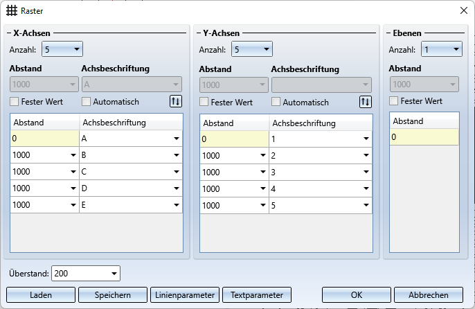 Stahlbau > Weitere Funktionen > Einst... > 3D-Raster
