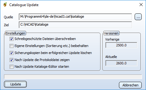 Weitere Informationen zum Update von Katalogen finden Sie in den HiCAD Installationshinweisen.