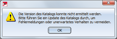 Kann die Version des Kataloges nicht bestimmt werden, dann erscheint folgende Meldung: