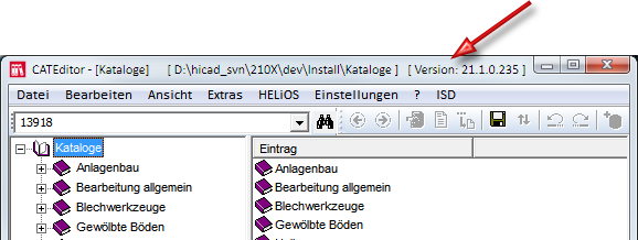- In der Titelzeile des Dialogfensters werden Name und Version des Katalogverzeichnisses angezeigt.