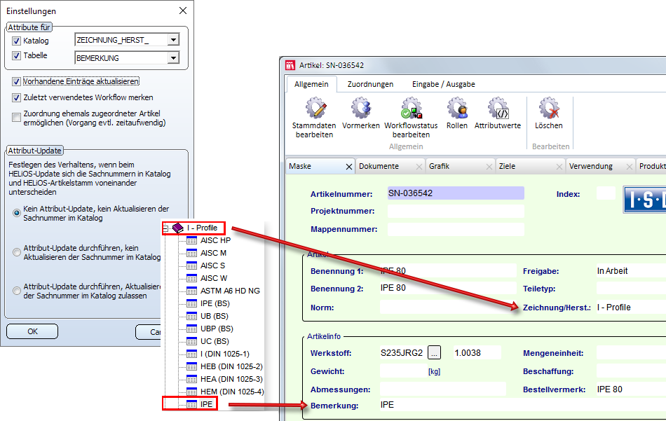 Attribut-Assoziativität: Katalog -> HELiOS Artikelstammverwaltung
