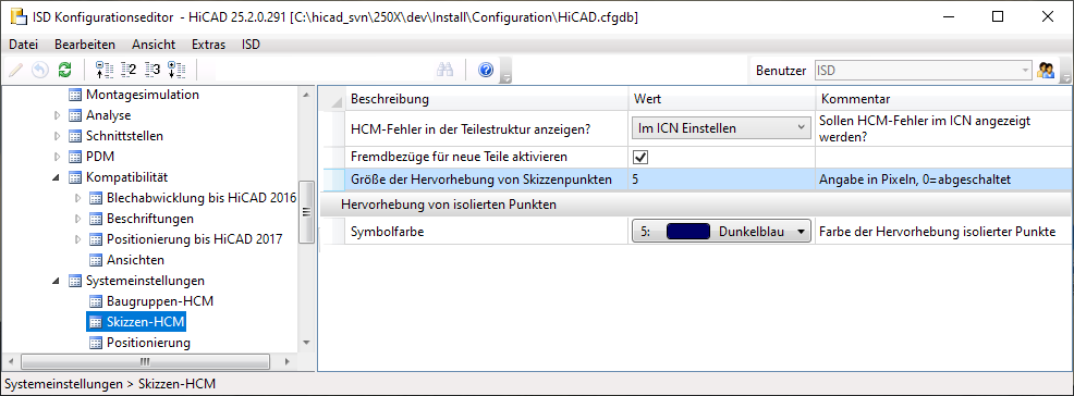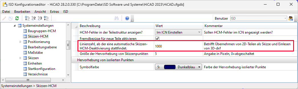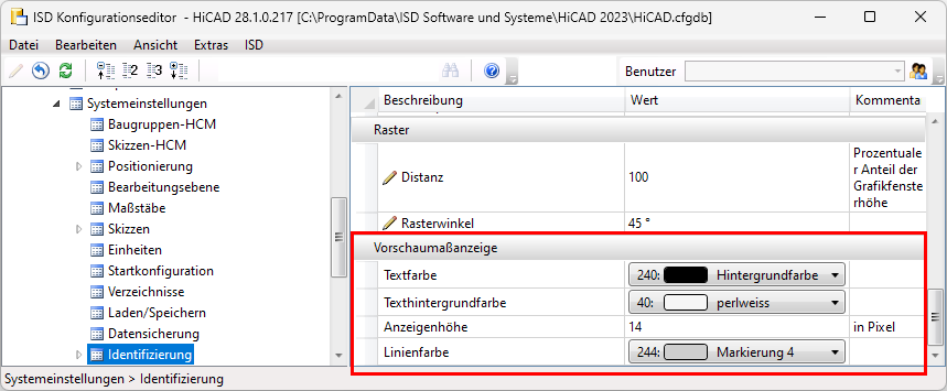 Die Größe und die Farbe der Hervorhebung legen Sie im Konfigurationsmanagement unter Systemeinstellungen > Skizzen-HCM fest.