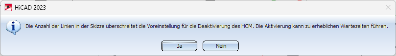Enthält die aktive Skizze beim Deaktivieren bereits HCM-Bedingungen, dann erscheint folgende Meldung: