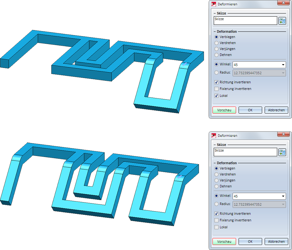 Ein Praxisbeispiel zum lokalen Verbiegen finden Sie hier.