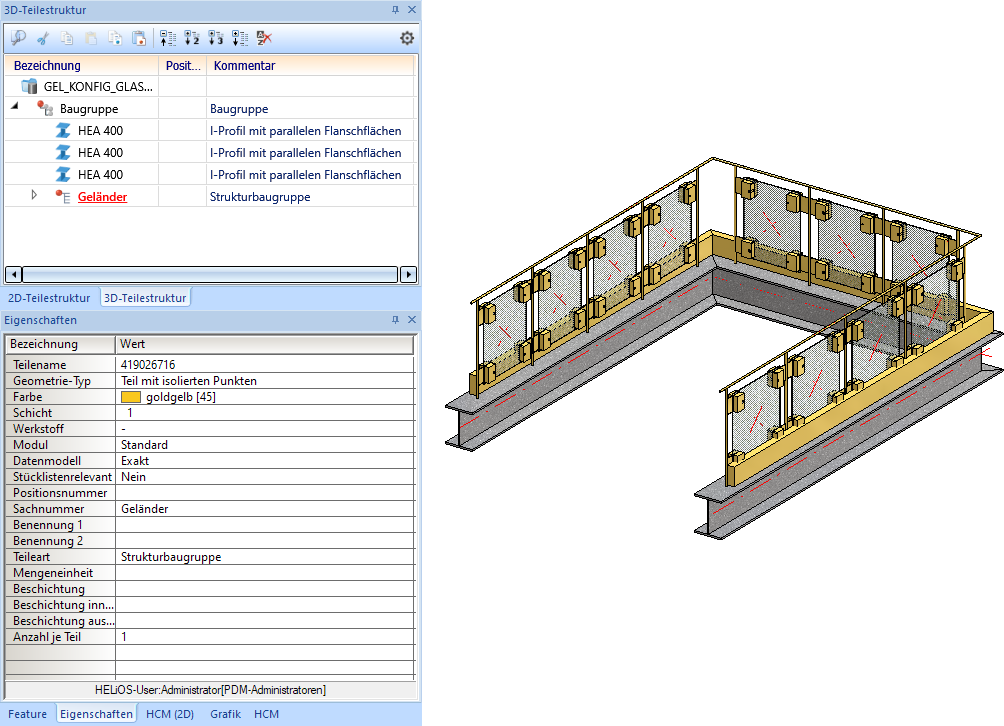 Wird die Strukturbaugruppe Geländer ausgewählt, dann wird keine Abmessungsberechnung durchgeführt.