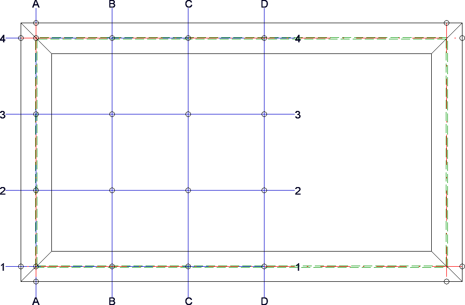 Die Länge der Beschriftungslinien wird zunächst bestimmt durch die Größe des Hüllquaders (1), der alle Teile der Konstruktion umschließt. Zusätzlich können Sie in den Feldern unter Ansichtsrahmen vergrößert um einen Wert (2) eintragen, um den die Beschriftungslinien oben, unten, links und rechts verlängert oder (durch Angabe eines negativen Wertes) verkürzt werden sollen.