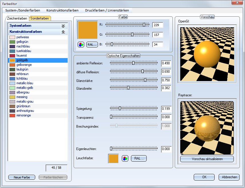 FarbeinstellungenFarbkonfigurationenKonstruktionsfarbenSystem-/Sonderfarben