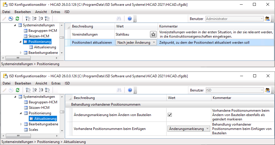 Die Einstellungen unter Kompatibilität > Positionierung bis HiCAD 2017 > Aktualisierung gelten auch für die aktuelle Positionierung! In diesem Modus beachten Sie bitte Folgendes: