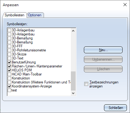 Aktivieren Sie dort die Registerkarte Symbolleisten und klicken Sie auf die Schaltfläche Neu.