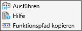 Wenn Sie mit der rechten Maustaste auf eine Funktion klicken, lässt sich die Funktion direkt aufrufen oder die Hilfe zu dieser Funktion einblenden.