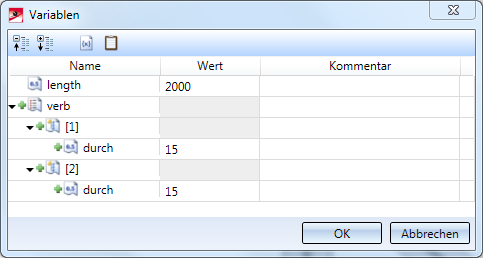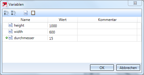 - Im Bereich Variablen klicken Sie auf <BUTTON>, um eine neue Variable in die Liste einzutragen. Geben Sie als Namen