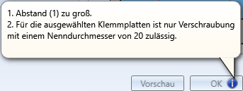 Ist aufgrund der gewählten Einstellungen ein Einbau der Verbindung nicht möglich, dann wird dies durch das Symbol
