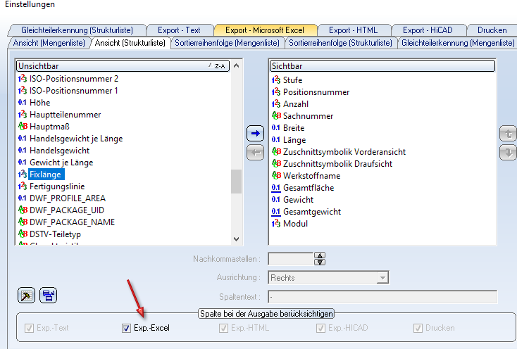 Wird nun eine Excel-Stückliste erstellt, dann wird die Fixlänge ausgewertet.