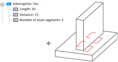 You can select between the standard representation (Mechanical Engineering) and the special, simplified representation (Steel Engineering). Furthermore, you can specify the distance between and the lengths of the lines for weld seam representation.
