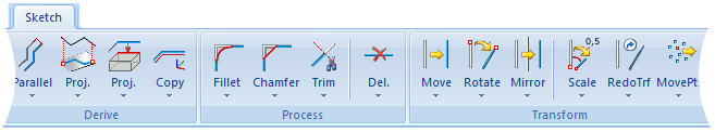 Please note that not all functions of the tab are available for sketches and 3-D sketches. The unavailable functions are greyed out, depending on whether a sketch or a 3.-D sketch is active.