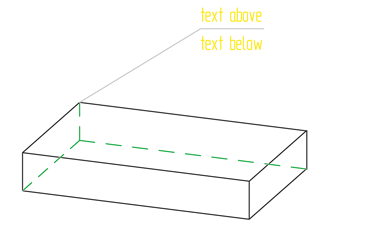 3-D Dimensioning + Text >Text > Part annotation, with free text + leader line