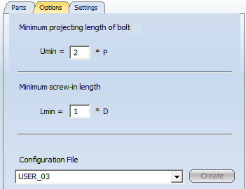 HiCAD normally determines the minimum bolt projection length and the minimum bolt depth automatically. However, the Options tab allows you to change the default setting used .