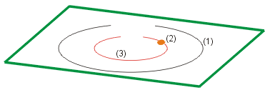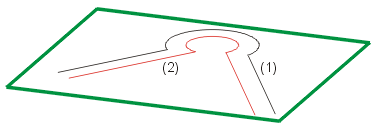 Identify the polyline (1) and enter the distance of the parallel polyline. The cursor position during identification determines the side on which the parallel polyline (2) is created.