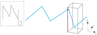 In general, this function works largely in the same way as the Section, Global function. The difference is that sectioning takes place here in the screen plane of the current view. This also enables intersection points to be found which cannot be determined with the Section, Global function because, say, the composite edge and the cutting element lie askew to each other
