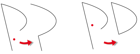Lengthened or shortened will always be the side of the edge which is closest to the identification point of the edge. if the lengthening point is located within the edge or a circular arc, the element will be shortened. "Within" here means that the lengthening point lies between the "imaginary" straight lines which run perpendicular to the edge through both end points. The same applies to circular arcs.