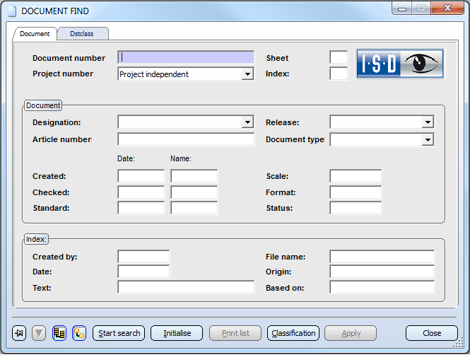 You can also select an archive file (PAA) via HELiOS. In the File selection list box, select with DB, via document master or with DB, via part master. Click Open archive. The HELiOS search mask will be displayed. Please note that the selected archive file may only be located in the Vault Server, provided that the server is active. |