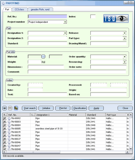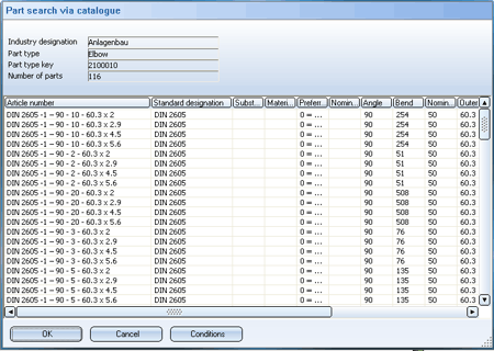 You select the desired part by double-clicking the appropriate list entry. You can also mark the entry and click OK. Use Cancel to end the search without selecting any parts.