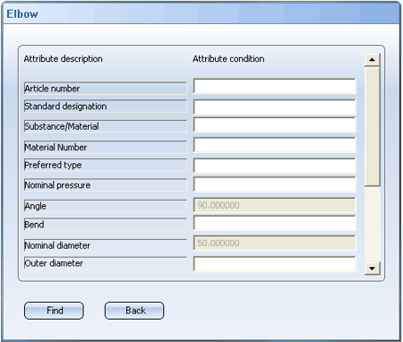 After entering the attribute conditions, click Find to obtain an appropriately narrowed search result list. Click Back to return to the unmodified selection list.
