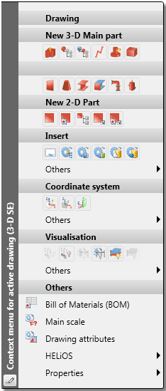 If you right-click an empty area of the HiCAD drawing surface, the context menu of the drawing is activated. This gives you fast and direct access to the following functions: