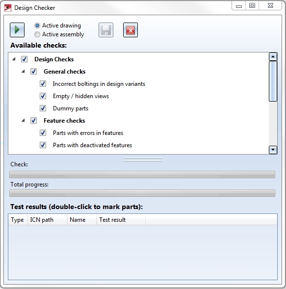 HiCAD checks the active drawing or assembly. Activate the desired option.