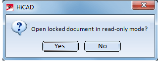 The HiCAD- Access denied message will be displayed. If you click OK HiCAD asks you you whether you want to open the drawing in read-only mode. |