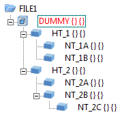 Example of the ICN structure of a part drawing consisting of main parts (HT) and sub-parts (ST). On the left, a dummy part (dummy) was used to define the assembly, on the right, the assembly component type.
