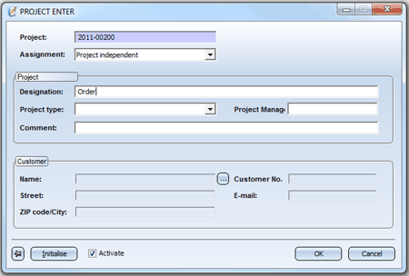 Use this function to display the master data of a selected project and edit them as desired. When you call the function, the input mask for projects will be displayed.