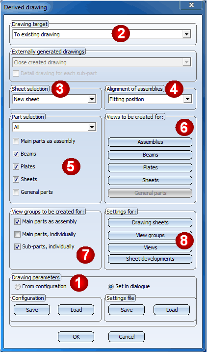 - Specify the Views to be created for assemblies, beams and plates and sheets.