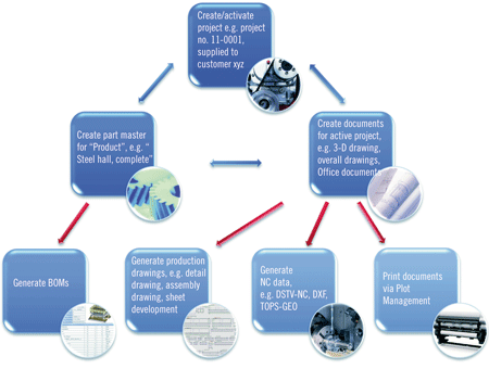 • Safe, database-supported management of drawings and parts for a project-oriented 3-D engineering