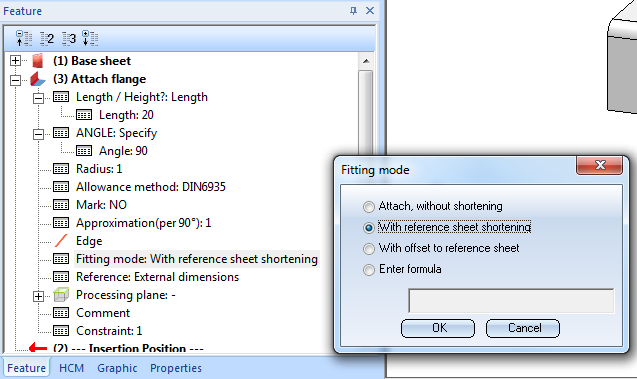 You can choose between the options Attach, without shortening, With reference sheet shortening and With offset to reference sheet.