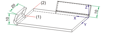 Lengthen flange in Z-direction, via 2 points | Lengthens a flange or bend zone in Y-direction via 2 points. |