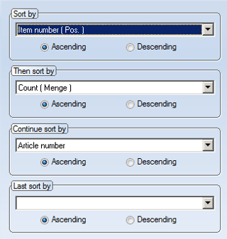 Structure Lists and Quantity Lists can be sorted according to individual sorting criteria. Up to 4 different sorting criteria can be selected.