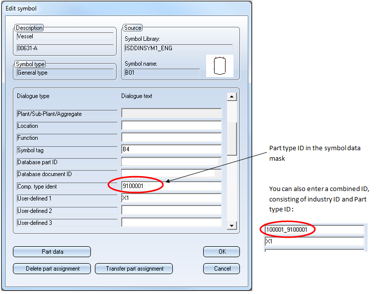 The identifications of two symbols are identical (and therefore not unique) if their entries match for the following dialogue types (the dialogue code is set in brackets):