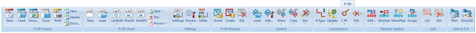 The P+ID functions can be found on the following tabs: