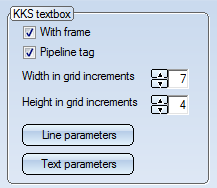 In this area, you can specify the properties of the KKS boxes. Text boxes are rectangular boxes positioned next to the symbol in flowcharts and are written into the symbol ID.