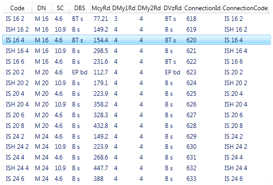 The standardised steel engineering connections according to DSTV/DAST are available in HiCAD in the form of tables. For some connections, the data for the corresponding parts (angles, plates, bolts, screws etc.) can be taken from these tables.