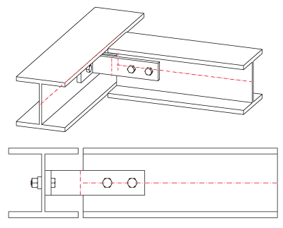 This variant connects beams with a flexible angle connection. The connection is two-sided, i.e. two beams are connected to a third beam.