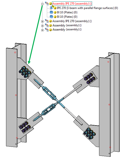 One beam and the plates mounted to it will form one assembly. All other components will be combined into a separate assembly (per diagonal bracing member).